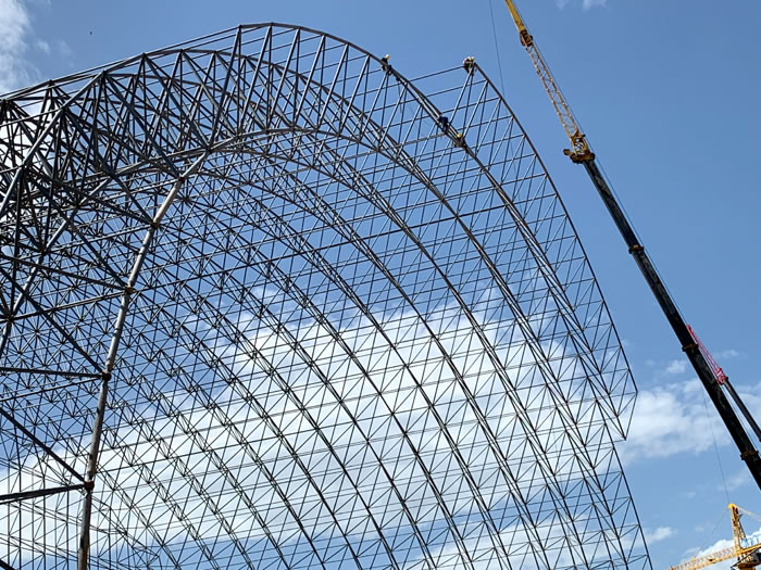 (2)网架加工前应对现场尺寸进行复测,确认无误后方可进行加工、安装;网架制作、运输、安装应遵守《空间网格结构技术规程》JGJ7-2010、《钢网架伊犁螺栓球节点》JG/T 10-2009、《钢网架伊犁螺栓球节点用高强度螺栓》 GB/T 16939-2016、《伊犁钢结构伊犁工程伊犁施工规范》 GB50755-2012、《伊犁钢结构伊犁工程施工质量验收标准》 GB50205-2020。